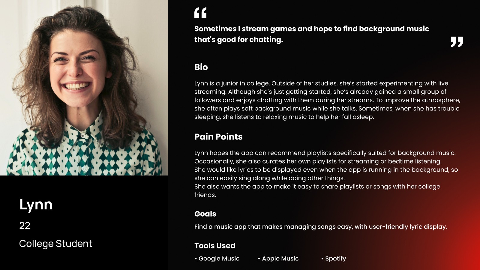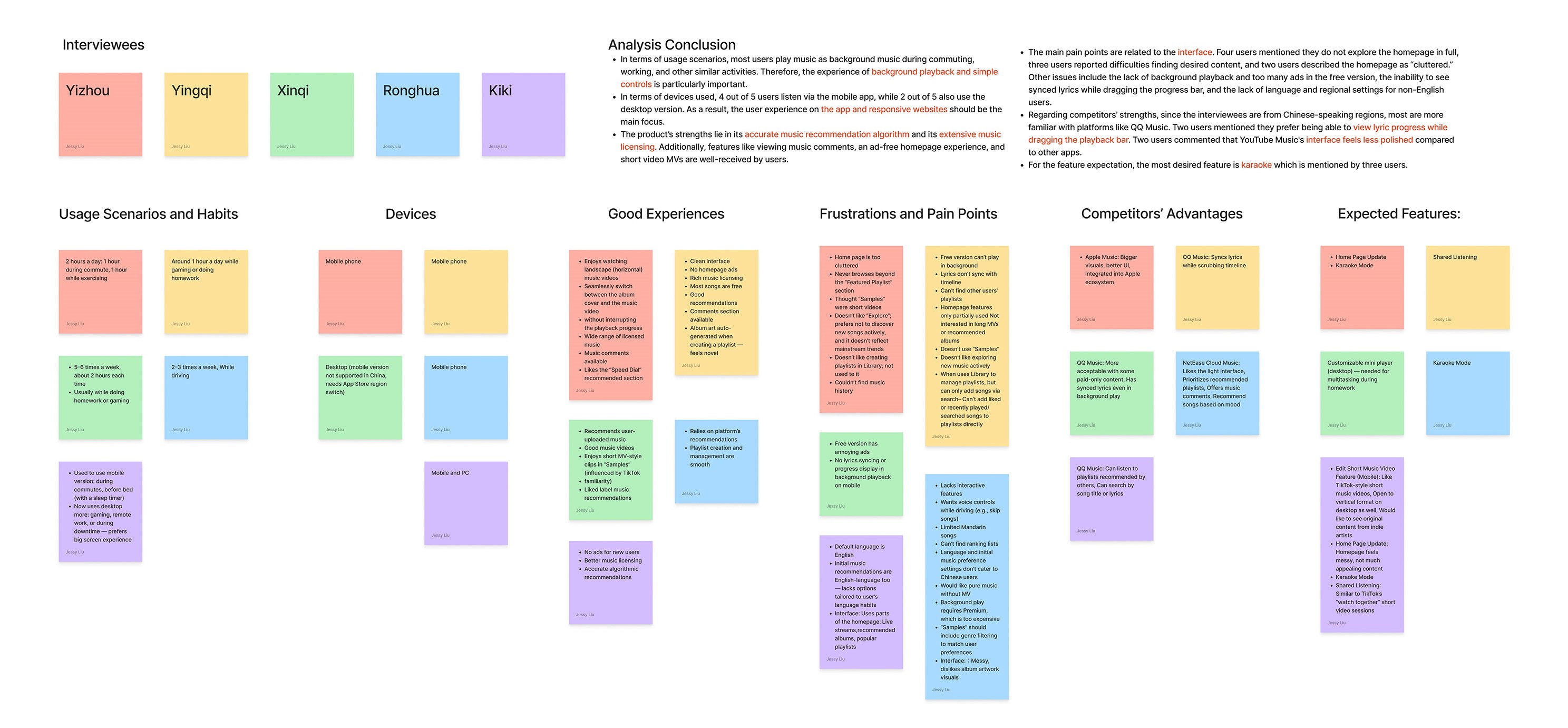 During the research phase, in addition to basic competitor analysis and user interviews, I also explored user pain points through Reddit, Discord, and other online communities. Surprisingly, the insights gathered from these platforms were not highly aligned with my interview findings. I assume this discrepancy is due to the fact that Reddit and Discord communities are largely composed of “Long-time experienced users” who are already loyal to YouTube Music, while the participants around me were mostly “light users” who have switched between YouTube Music, Apple Music, and other platforms. These light users represent the audience YouTube Music most needs to reach in order to expand its market share. For this reason, I prioritized insights from my interview participants in the later stages of the design process.