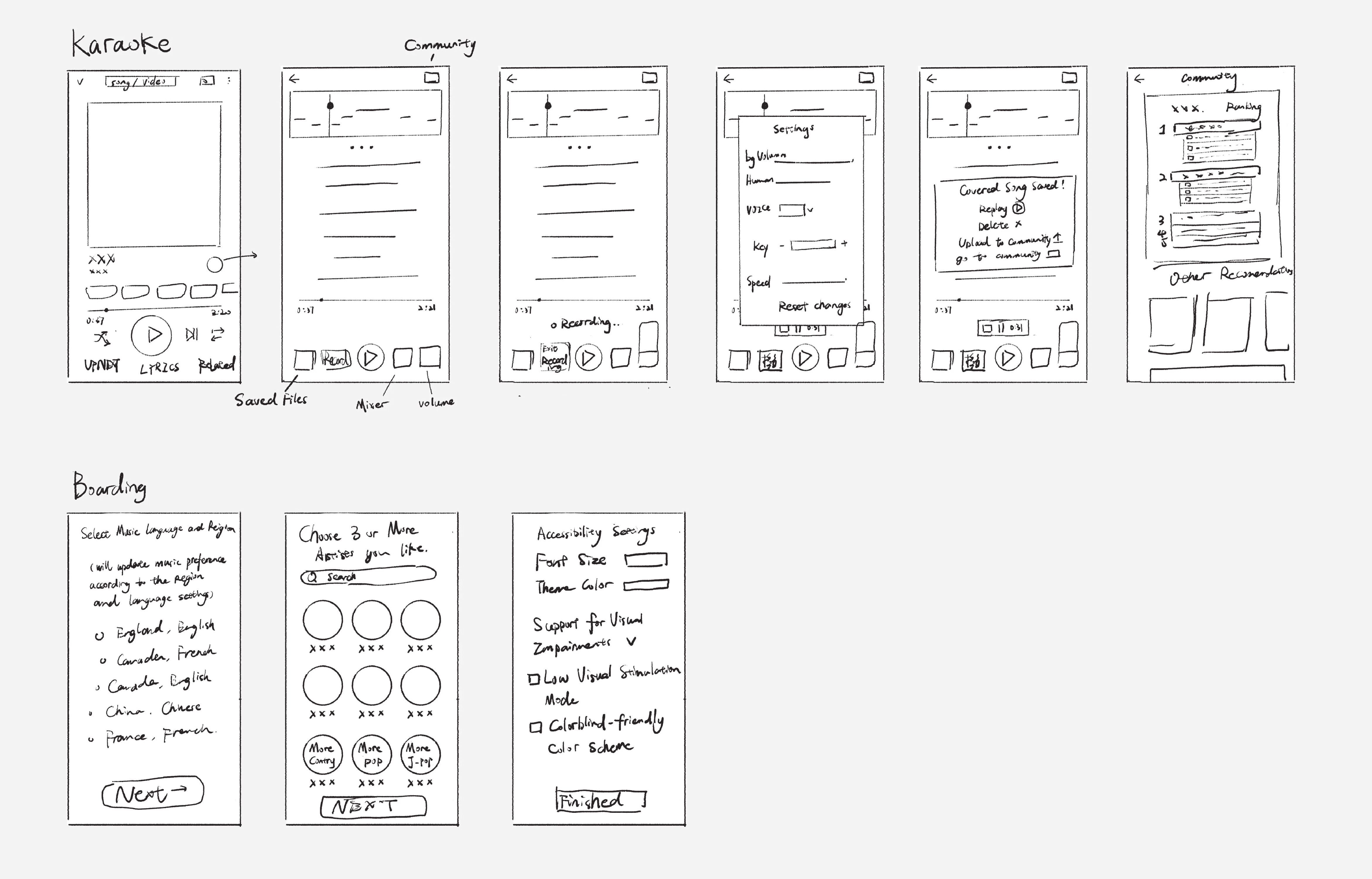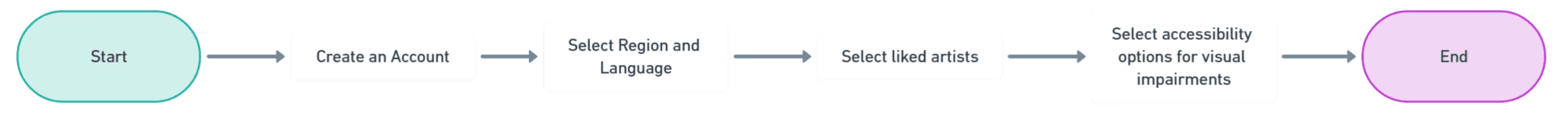 I enhanced the previous onboarding flow by adding two key elements that were missing: localized artist recommendations based on language and region, and accessibility settings for users with visual needs.